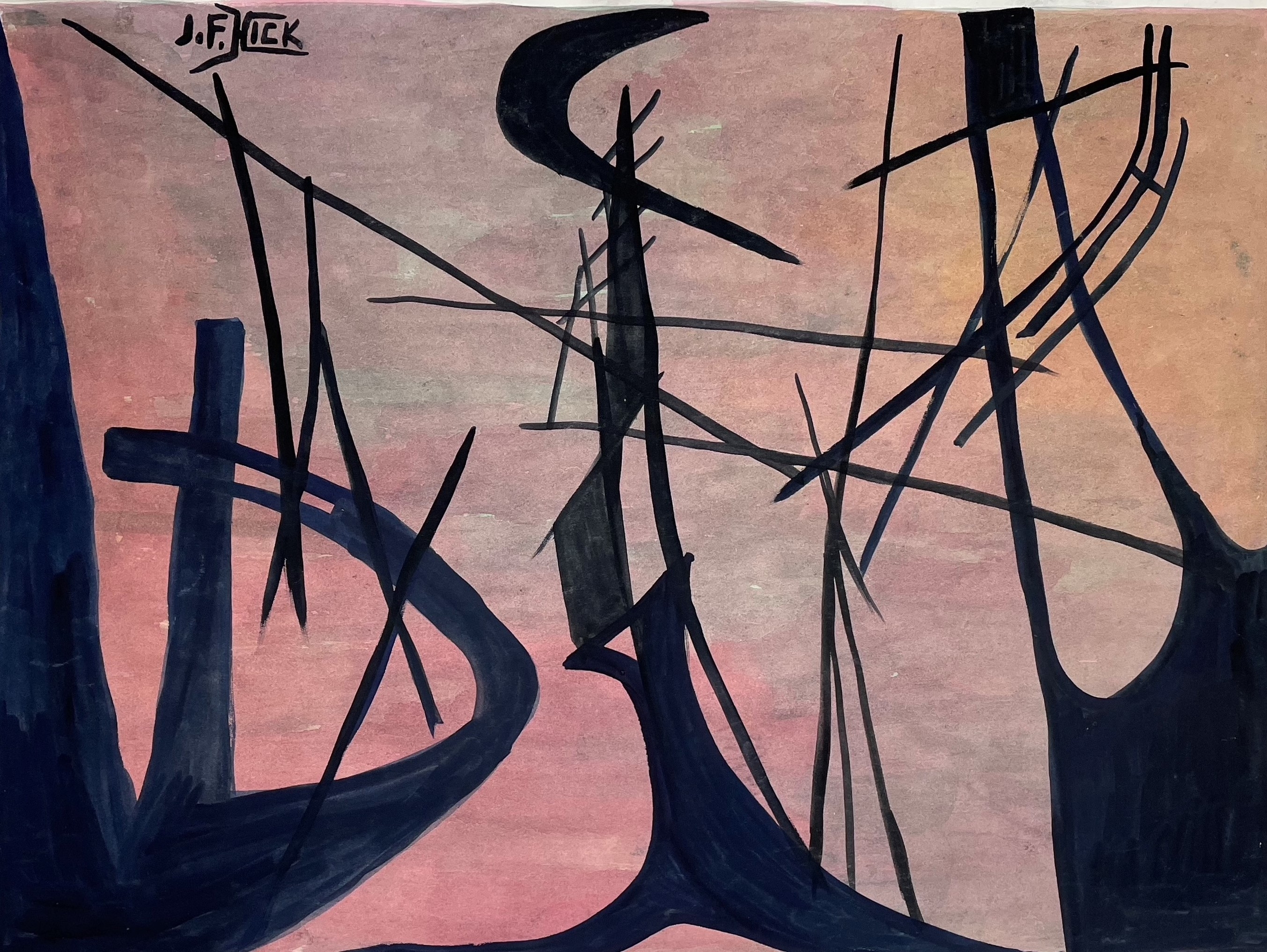 De Luikenaar Jean Hick was een veelzijdig muzikant, tekenaar, aquarellist en schilder. Na zijn opleiding als violist groeit zijn passie voor de schilderkunst. Hij volgt lessen bij William Hayter in Paris. Na een academische en figuratieve periode kiest hij resoluut voor de abstractie.